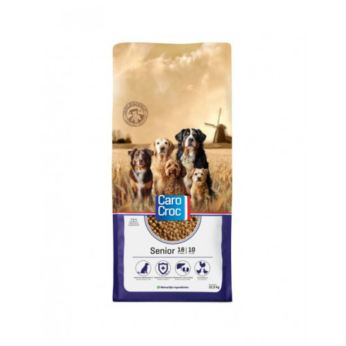 Vanaf 7 jaar kan jouw hond verouderingsverschijnselen vertonen. De stofwisseling gaat trager werken en het activiteitsniveau kan afnemen. Dit betekent dat de energiebehoefte van jouw hond verandert. Het is erg belangrijk om het voer hier op aan te passen, om de gezondheid te ondersteunen. Zo heeft CaroCroc Senior een laag eiwit- en vetgehalte (18% eiwit, 10% vet) in vergelijking met een gemiddeld volwassen voer (23% eiwit, 12% vet). Dit noemen we ook wel voeren naar energiebehoefte. Je leest er hier meer over.