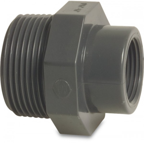 Mega Soknippel PVC-U 1 1/4" x 1 1/2" buitendraad x binnendraad 10bar grijs