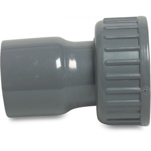 Mega 2/3 koppeling handgevormd PVC-U 32 mm x 1" lijmmof x wartel binnendraad 10bar grijs