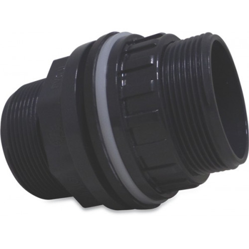 Mega Doorvoer PVC-U 50 mm x 2" x 2 1/4" lijmmof x buitendraad x buitendraad 10bar grijs