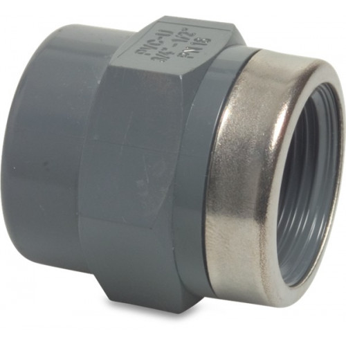 Mega Draadsok PVC-U 3/4" x 1/2" binnendraad 10bar grijs type versterkt