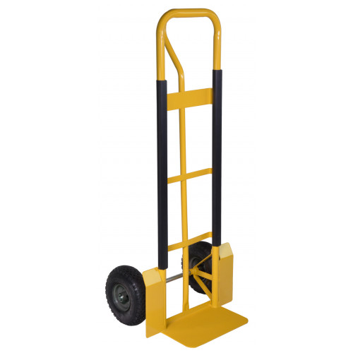 Steek krattenwagen met frame van geel gecoate buis (Ø 30 mm) met kunststof geleidestrips. Formaat 130x50 cm, bladmaat 35x18 cm. Geschikt voor max. 250 kg. Wielen 300x4 2ply met metalen velg, kogellagers en binnenband.