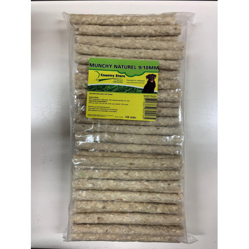 Munchy sticks zijn gemaakt van vermalen onderhuids bindweefsel. Dit bestaat voor het grootste gedeelte uit collageen, wat goed is voor de gebitsverzorging van uw hond. Het breekt tandplak af en is ook zeer geschikt om de kauwspieren te trainen. Munchy Sticks zijn door de fijne vermaling zeer goed verteerbaar.