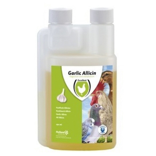 De Garlic Allicin Liquid is een voedermiddel, dat natuurlijke 100% Europees geteelde knoflook bevat en speciaal voor kooivogels, duiven, watervogels en pluimvee bestemd is. Een unieke eigenschap van de Garlic Allicin Liquid is de duale werking; zowel inwendig als uitwendig!