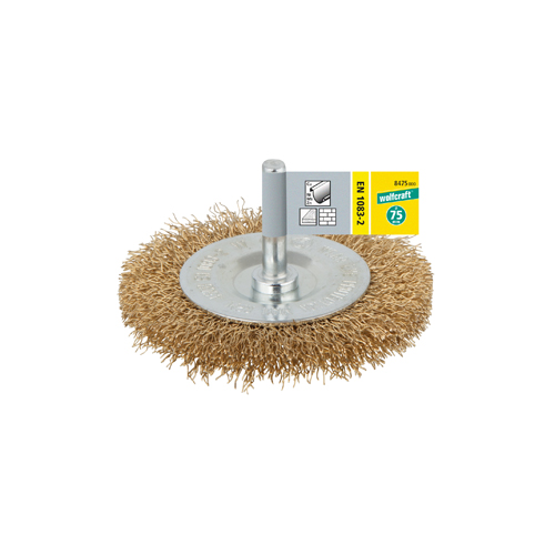DRAADBORSTEL SCHIJF 75MM MESSING RONDE SCHACHT 6MM